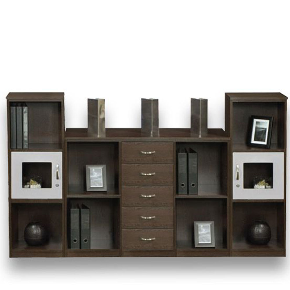 1350w x 450d x 900h x2 Hinge Door Cupboards Open Bookcase 3 Drawers