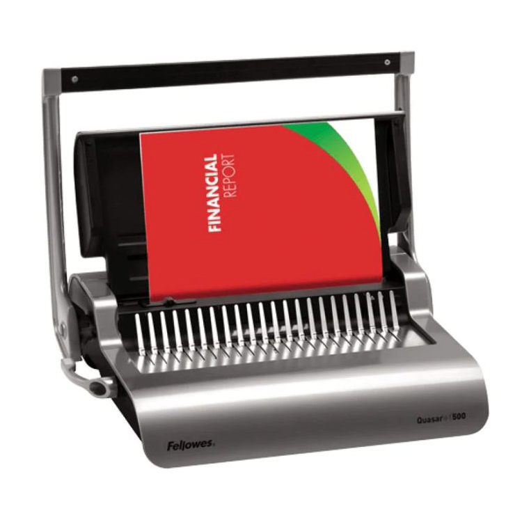 Binding doesn’t get any simpler. The GBC CombBind C450E is ideal for high volume, shared use. Electronic paper punching and colour coded Pro Combs make binding quicker and easier. It combines a punch capacity of up to 25 x 80gsm sheets with a binding capability of up to 450 sheets using 51mm spines, binds A3 portrait, A4 or A5 sizes and is equipped with features such as auto centering and a paper separator.