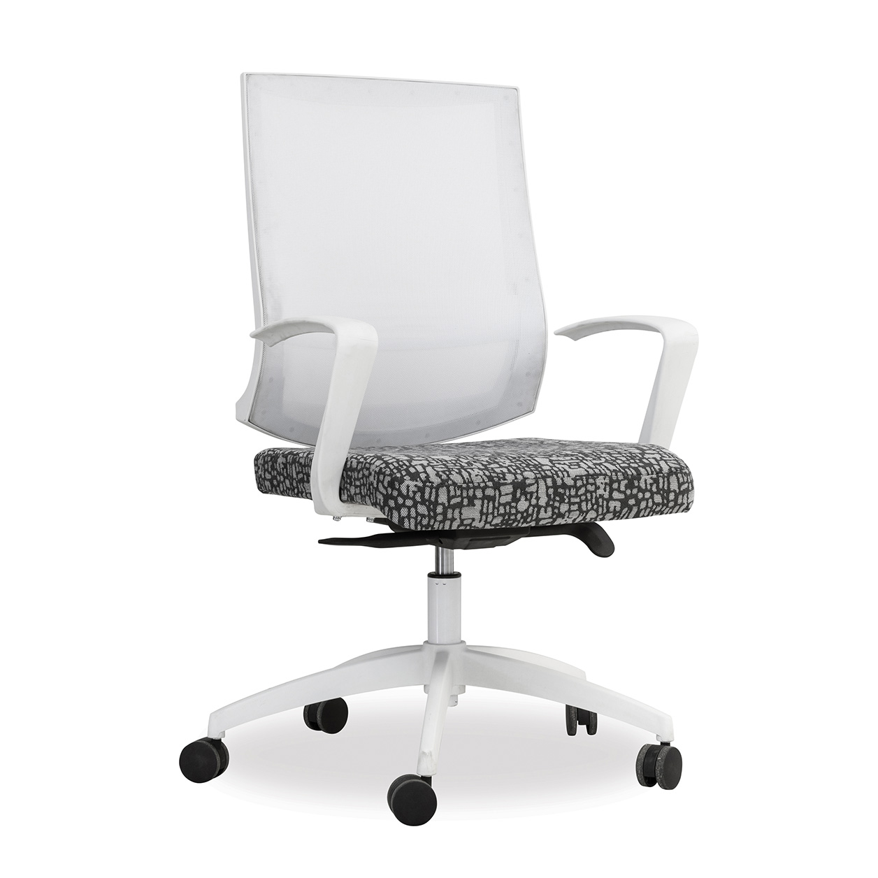 White frame with white mesh Standard without arms Synchro mechanism with 5 position lock White nylon spider base