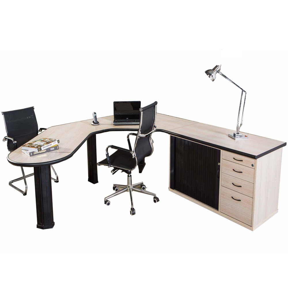 Melamine 32 top with bull nose edge, only available in black Work Station Comprising of: D End Gull Wing 1200 x 1200 Core 1300 Roller Door