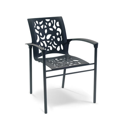 Fully outdoor comprising weather proof Textilene mesh seat and back.