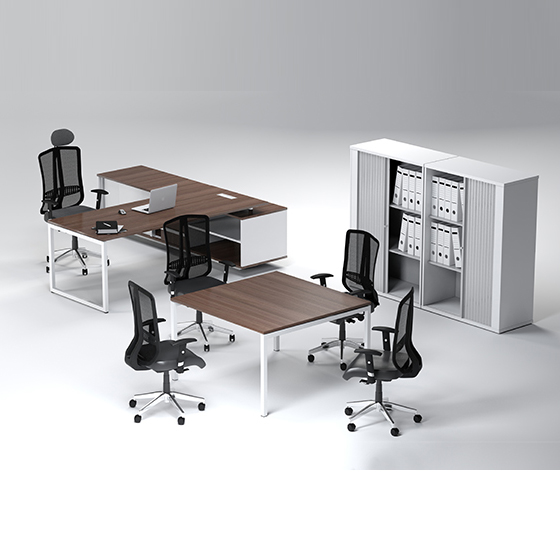 2 Way face to face with Open Combination Pedestal + Aluminium Frame Screen